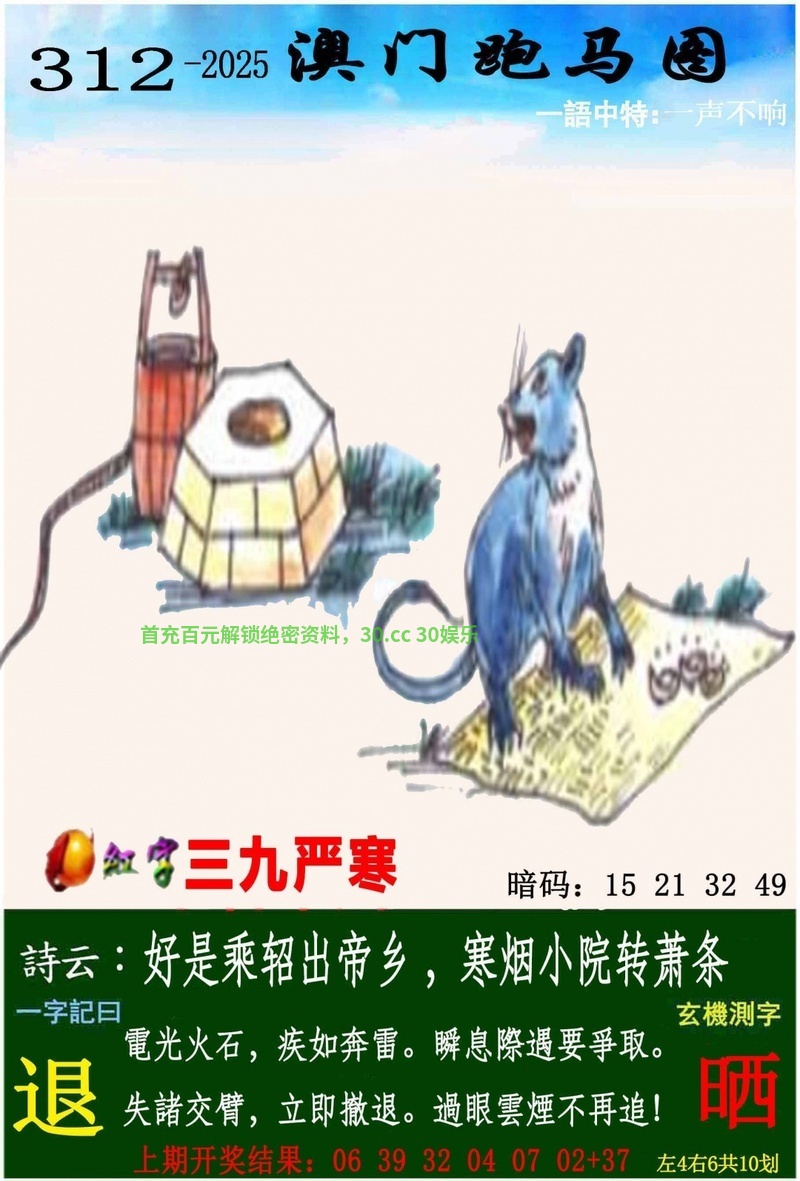 309期:绝杀三肖【羊虎狗】开:鼠06准
