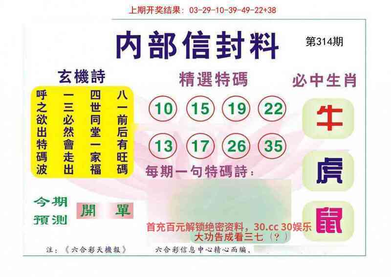 | 315期 | 牛 | 5尾 | 3头 | 虎04 |