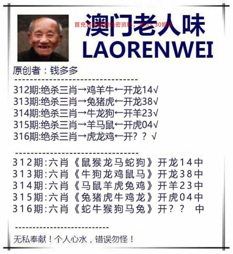 | 317期:澳门钱多多网【一码每晚19:30】公开 |